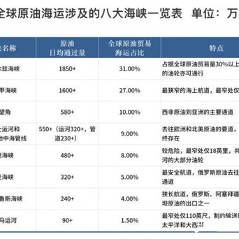 霍尔姆兹海峡,在油气通过量的占比上是全球八大原油港口中最高的31%: